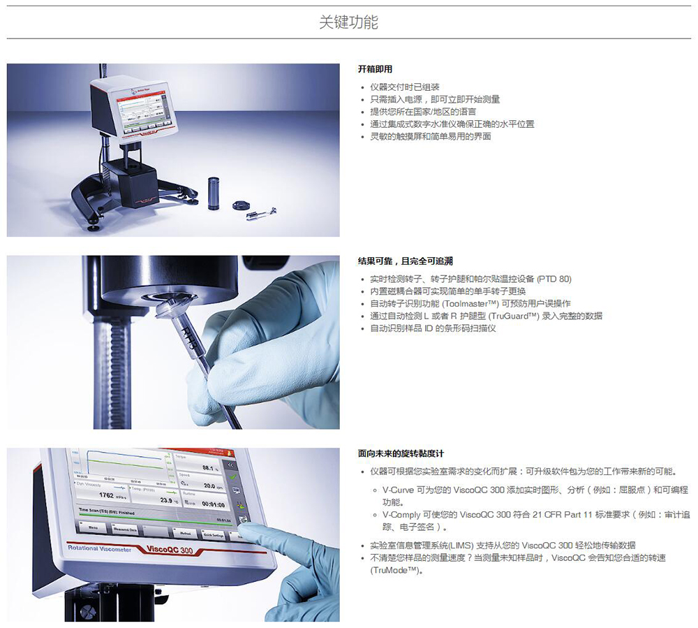 簡單靈活的特點和可靠的結果使得 ViscoQC 成為了旋轉式黏度測量的理想選擇。它可從液體到半固體的各種物質的質量,量程范圍精度高達 ±1.0%。除了轉子磁耦合功能,自動轉子識別功能獲得可追溯、無差錯的測量結果。當您測試未知樣品時,它甚至會建議合適的轉速。