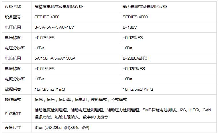 Series 4000高精度電池測試設備 包括如下功能: